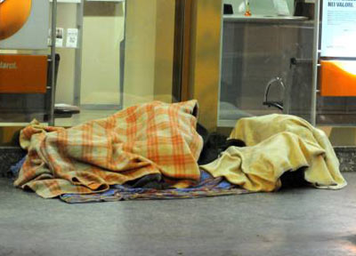 Alcuni barboni della stazione centrale riforniti con bevande calde